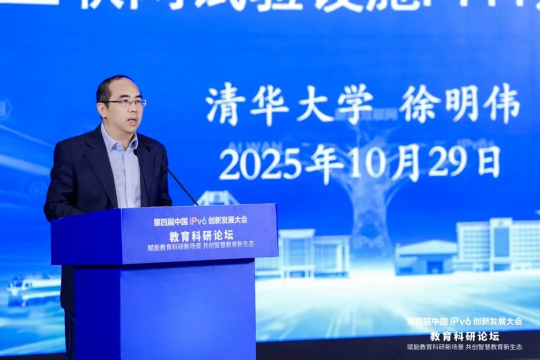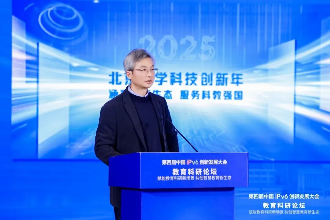 教育部科学技术与信息化司舒华副司长在致辞中指出,党中央高度重视科技对教育的深刻影响,教育部深入贯彻落实党中央决策部署,实施国家教育数字化战略行动,深入推进IPv6规模部署和应用工作,取得了积极进展。她对推动IPv6应用在教育领域的走深向实提出三点期望:一是推进基建底座再升级。加快实现教育系统网络全面升级换代,有效提升教育系统网络承载能力;深入推进IPv6规模部署和应用,推进IPv6技术演进和应用创新发展,加快向IPv6单栈目标演进。二是坚持核心技术再攻关。加强高校在内的产学研用高效协同,在基于IPv6的新型网络体系、确定性网络、网络内生安全等创新领域取得更多突破。三是推动人才培养再深化。强化IPv6人才培养体系,优化人才培养模式,创新人才评价机制,为网络强国发展提供人才支撑。